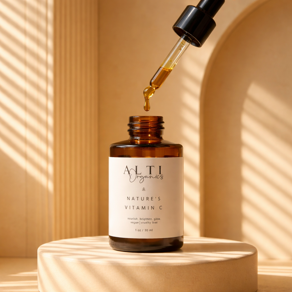 We believe that natural is better when it comes to skincare, that's why our Nature's Vitamin C is just that, Vitamin C from nature. Formulated without synthetic Vitamin C. This brightening oil booster is carefully formulated with plant extracts containing high amounts of Vitamin C and E that your body can actually use! Potent amounts of nourishing plant Vitamin C antioxidants protect your skin against environmental stressors while keeping your skin hydrated, supple and bright. This nourishing oil is complimented with Bearberry and Kakadu Plum for extra potent brightening results, to help smooth fine lines and wrinkles, fade hyperpigmentation and brighten overall complexion. Watch your skin glow like never before!