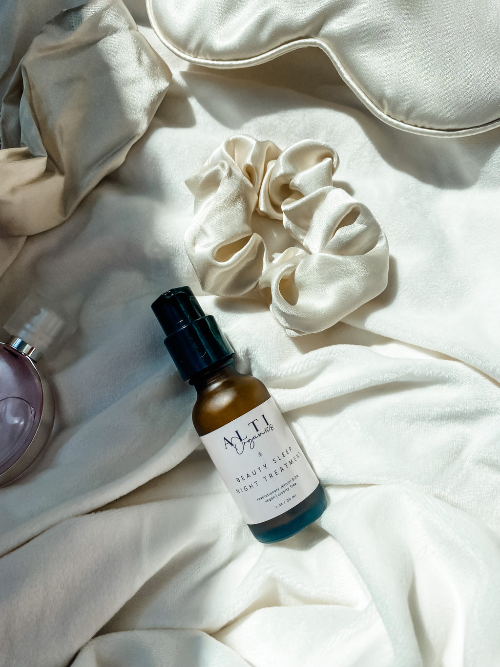 Our beautiful nude silk set compliments every self care routine and makes the perfect gift!