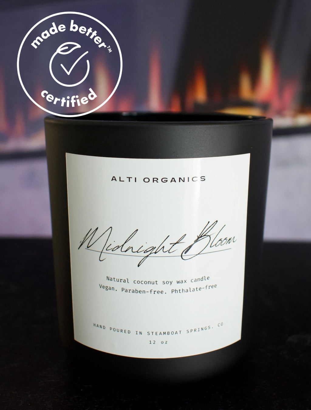 Midnight Bloom is an intoxicatingly beautiful, classy and luxurious floral + musk candle. Deep and complex black rose mingles with decadent plum and sandalwood to gently fill the air. It'll have you romanticizing the night away with the evening glow of a crackling flame that takes you for a sultry, floral experience. Intriguing and mysterious dark, woodsy florals gently filling the air -you'll be falling for this one of a kind warm and sensual candle time and time again.